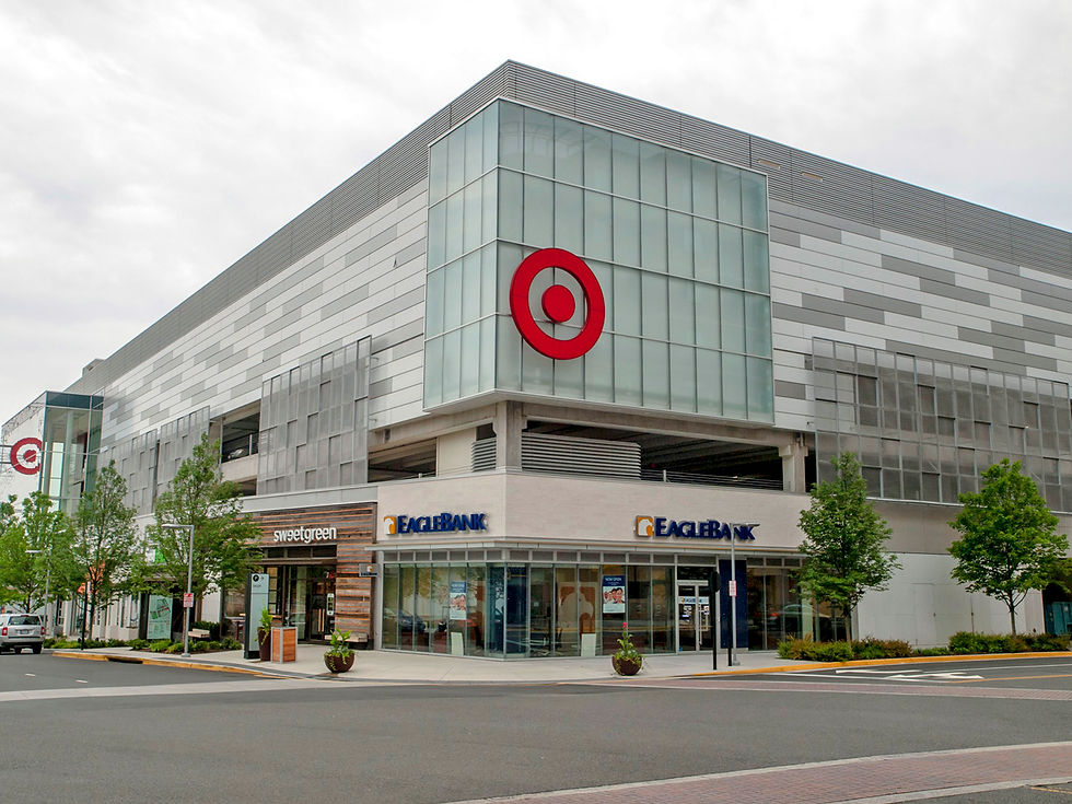 Sleek glazed storefront, frameless glass wall panels, curved ceiling clouds, and colorful ceramic tile floors mark this 2,500 square foot tenant build-out. This EagleBank branch sits on a high-traffic corner in Fairfax County’s Mosaic District, the bright lit interior and vibrant finishes speak to the language of the adjacent retail storefronts. The build-out provided a number of amenities including a conference room, customer lounge, private offices, accessible employee galley, and contemporary furnishings throughout.